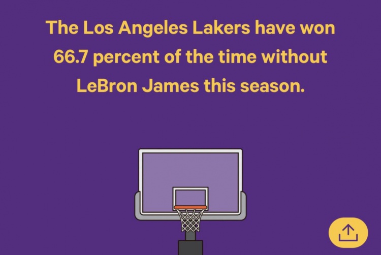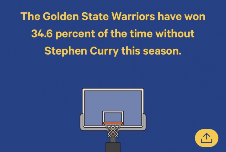 本赛季库里缺席时勇士赢34.6%比赛 詹姆斯缺席时湖人赢66.7%比赛